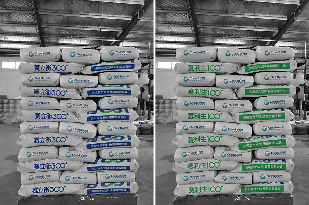 我們了解到飼料線產(chǎn)品在銷售推廣時,現(xiàn)場并無包裝實物,多以宣傳物料上的展現(xiàn)為主,其包裝的核心視覺接觸點在于倉儲及運輸過程中。