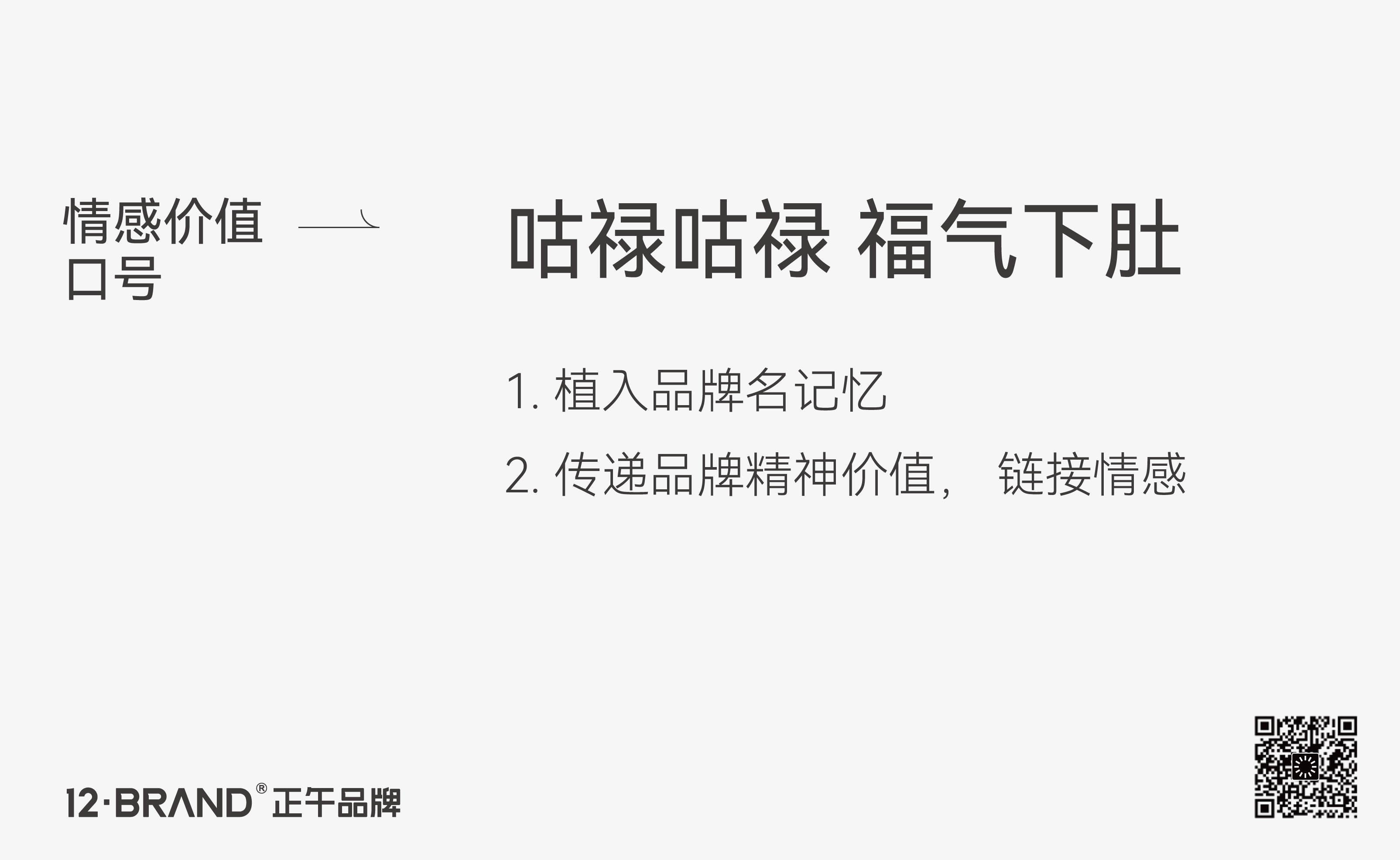 品牌口號的價(jià)值在于強(qiáng)調(diào)產(chǎn)品利益,宣傳品牌精神。從產(chǎn)品價(jià)值與情感鏈接兩個(gè)角度,我們?yōu)楣镜摴镜撁鞔_兩句品牌傳播口號。