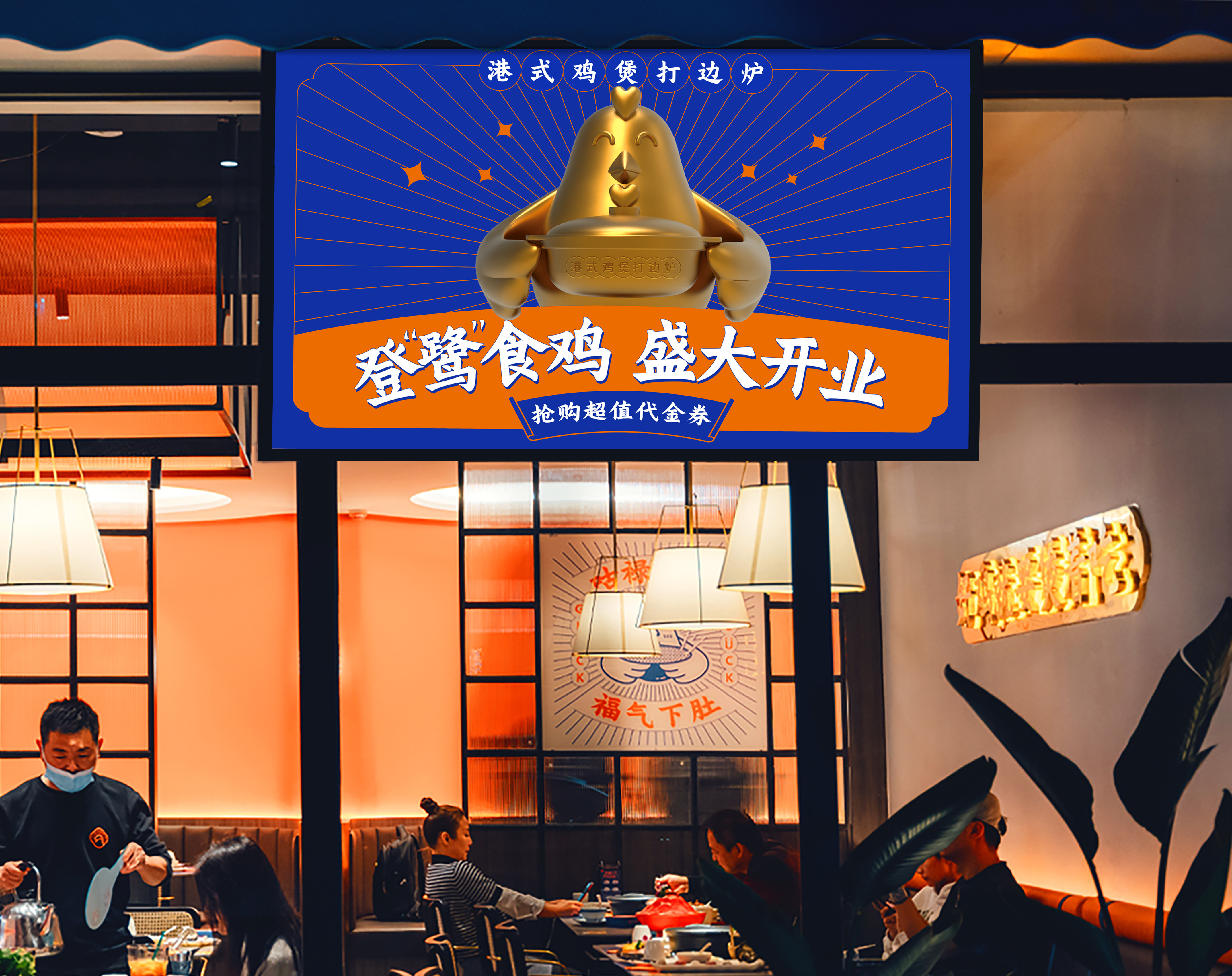在品牌空間的表達(dá)上,圍繞品牌資產(chǎn)打造空間,以保證品牌識別的一致性,強(qiáng)化整體品牌印象;在空間體驗(yàn)的塑造上,我們聚焦“好運(yùn)歡樂”文化,將整體打造成一個(gè)有現(xiàn)代港式特色的好運(yùn)文化就餐空間,從空間上建立起自己的品牌壁壘,用美好舒適的就餐體驗(yàn)留住客戶。