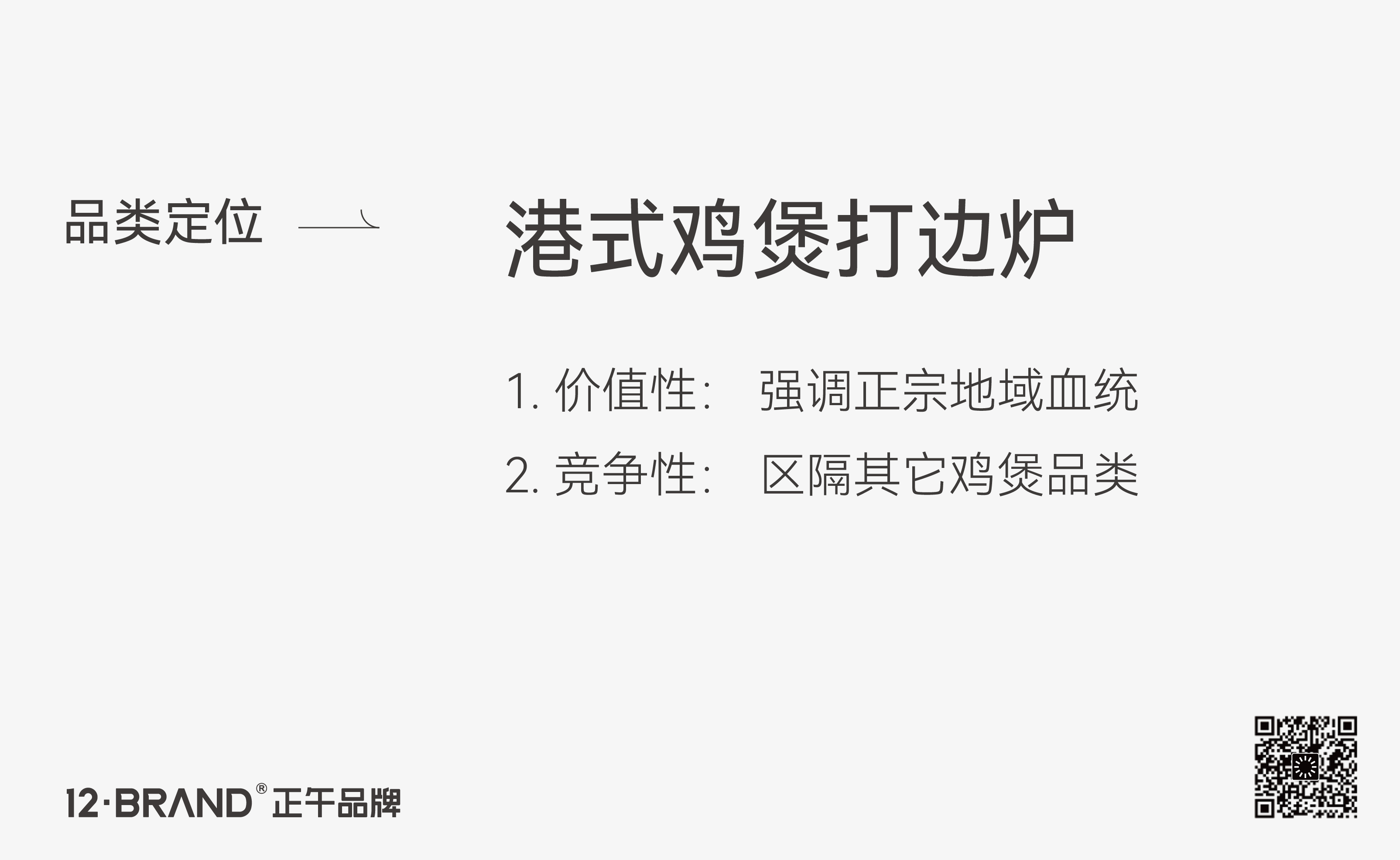 若將品牌直接定義為“雞煲”“雞煲火鍋”,其地域?qū)傩圆幻?,消費(fèi)者很難完成熟悉地域的分類,對于一個(gè)初創(chuàng)品牌來說,認(rèn)知成本過高。因此,我們采用屬地化定位策略,將品類定義為“港式雞煲打邊爐”,強(qiáng)調(diào)產(chǎn)品正宗地域血統(tǒng)以區(qū)隔其它雞煲品類,讓品牌認(rèn)知更清晰。